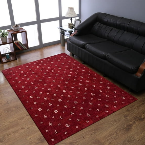 - handmade area rugs hand woven knotted loom gabbeh contemporary modern bohemian collection red white 8x10 8'x10' 8 by 10 large big indoor rectangle 8 ft living room bedroom dining room christmas organic silk eco-friendly natural clearance pet friendly high footfall thick high traffic high pile high footfall