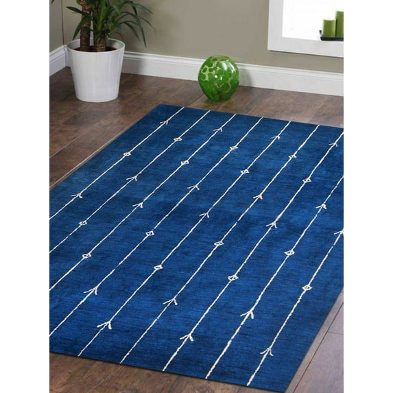 Fill your living zone great elegance and charm by placing this eye pleasing hand knotted rug. Its modish contemporary designs and dazzling blue shade will add rejuvenating impact to your home décor. The cherry on the cake will be its silk mix stuff that imparts warmth and fluffiness to the flooring of your bedroom, entrance, living room or patio. This loom silk mix rug is apt for large foot traffic spaces. This Indoor Area Rug available in 8'x10' Size and Blue Color.