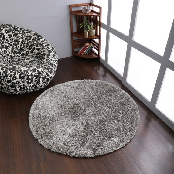 Hero image 0 of Rugsotic Carpets Hand Tufted Shag Polyester Eco-Friendly Area Rugs - 8'x8', Round, Silver White, Plain Solid Design, High Pile Handmade Anti Skid Rugs for Living Room, Bed Room K00111, 0 of 5