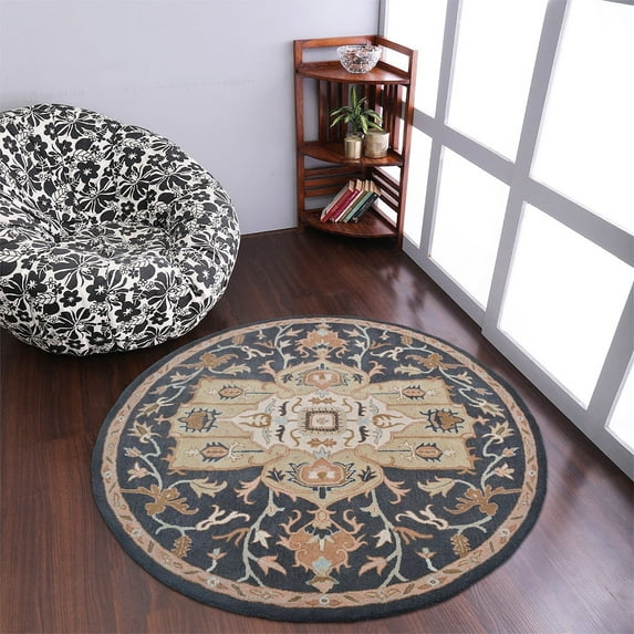 - handmade area rugs hand tufted oriental traditional vintage bohemian collection charcoal beige 8'x8' 8x8 8 by 8 large big indoor round 8ft living room bedroom dining room christmas organic wool clearance thick high traffic high pile non slip