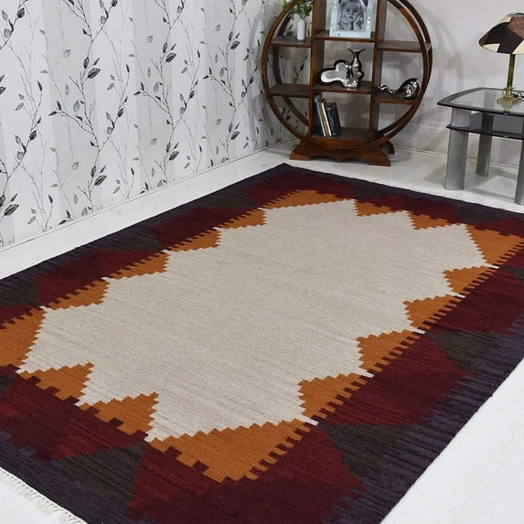 - handmade area rugs carpets hand woven kilim contemporary modern bohemian collection white plum 4x6 4'x6' 4 by 6 4 by 6 medium indoor rectangle 4 ft living room bedroom dining room christmas organic wool eco-friendly clearance pet friendly low pile thin