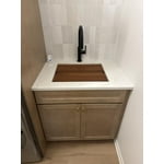 [This review was collected as part of a promotion.] For the first time in my life I have an indoor laundry room. This Ruvati had the same granite lining I chose for my kitchen sinks. It came in a beautiful warm white and included a wood shelf and metal rack. The price was reasonable and it looks great with the design.