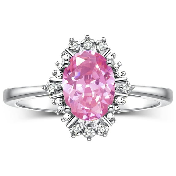 Hero image 0 of RYLOS Rings for Women Sterling Silver Ring with 7X5MM Oval Gemstone & Sparkling Diamonds October Pink Ice Jewelry Size 7, 0 of 7