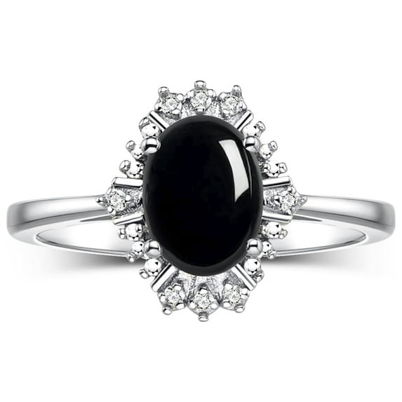 Hero image 0 of RYLOS Rings for Women Sterling Silver Ring with 7X5MM Oval Gemstone & Sparkling Diamonds October Cabochon Onyx Jewelry Size 10, 0 of 7