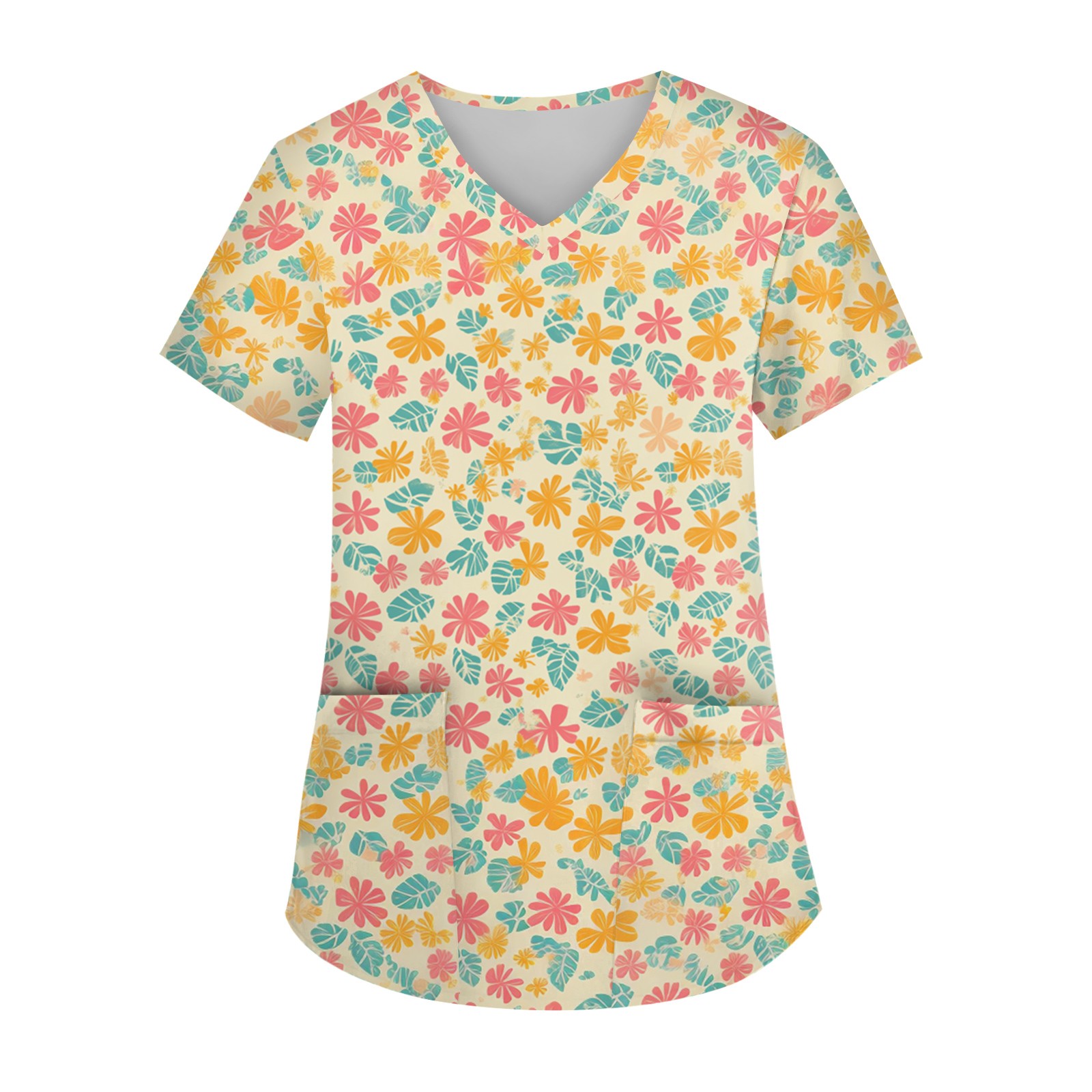 Hero image 0 of SAATLERI Scrub Tops Women Hawaiian Scrubs for Women Floral Printed Scrub Tops Casual Holiday Medical Uniform with Pockets, 0 of 4