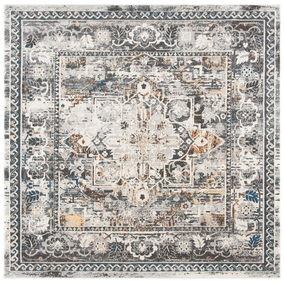 SAFAVIEH Alhambra Leptis Oriental Area Rug, Grey/Cream, 5'3" x 5'3" Square