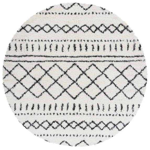 SAFAVIEH Arizona Teagan Geometric Shag Area Rug, Ivory/Black, 3'2" x 3'2" Round