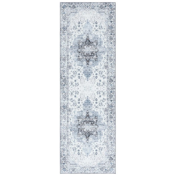 SAFAVIEH Arizona Tristen Medallion Machine Washable Runner Rug, Ivory/Blue, 2'6" x 8'