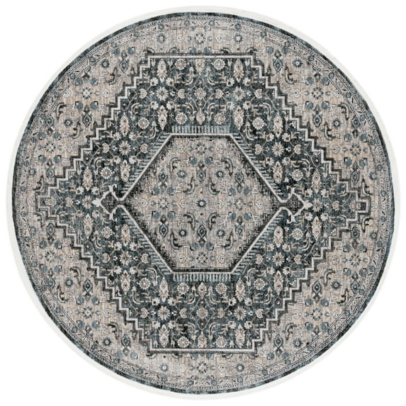SAFAVIEH Artifact Theophania Medallion Polyester Area Rug, Gray/Black, 6'7" x 6'7" Round $196.99