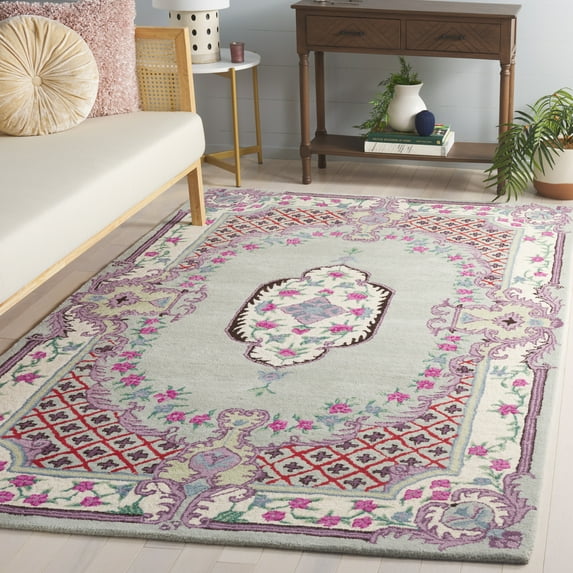 SAFAVIEH Bellagio Chandler Floral Wool Area Rug, Light Green/Ivory, 5' x 8'