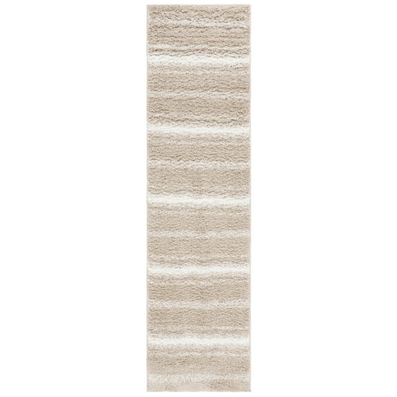 SAFAVIEH Border & Stripe Jerred Striped Shag Runner Rug, Beige/Ivory, 2'2" x 8'