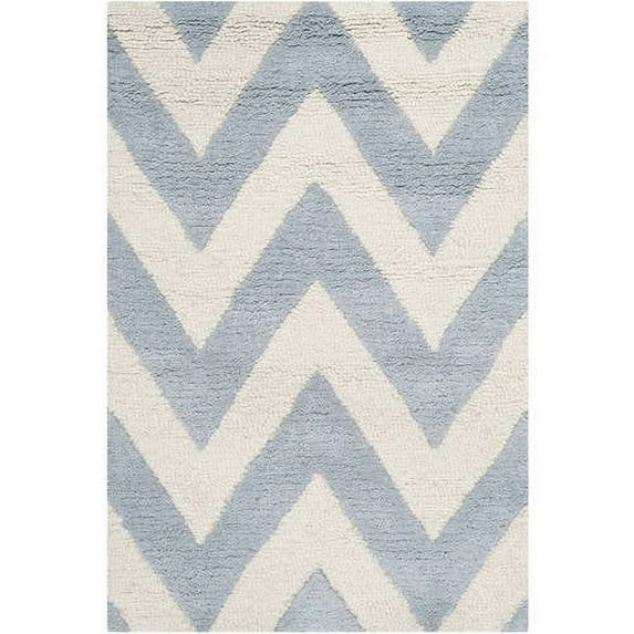 Hero image 0 of SAFAVIEH Cambridge Kaitlyn Zig Zag Stripes Wool Area Rug, Light Blue/Ivory, 8' x 8' Square, 0 of 7