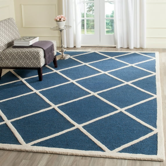 Hero image 0 of SAFAVIEH Cambridge Kennedy Geometric Diamonds Wool Area Rug, Navy/Ivory, 6' x 6' Square, 0 of 9
