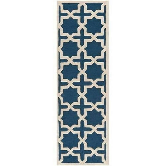 SAFAVIEH Cambridge Liz Geometric Wool Runner Rug, Navy Blue/Ivory, 2'6" x 12'