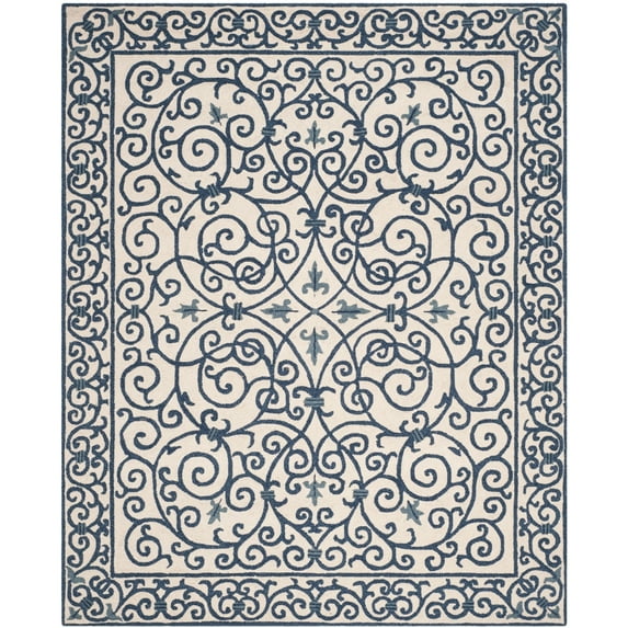 Hero image 0 of SAFAVIEH Chelsea Aragon Geometric Borders Wool Area Rug, Ivory/Dark Blue, 7'6" x 9'6" Oval, 0 of 11