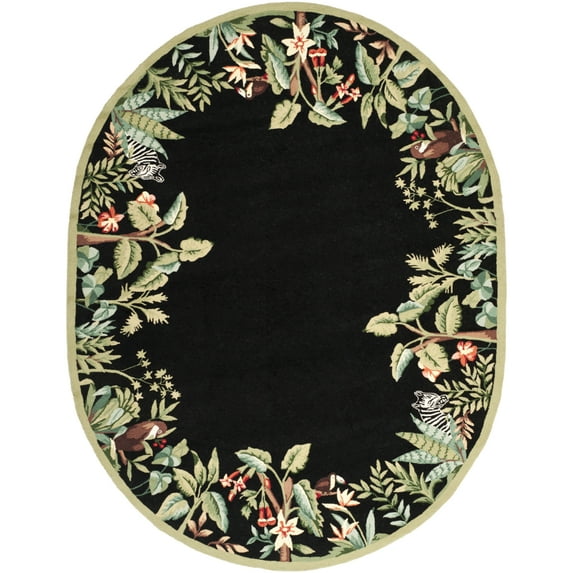 Hero image 0 of SAFAVIEH Chelsea Deloris Animal Lovers Wool Area Rug, Black/Green, 7'6" x 9'6" Oval, 0 of 9