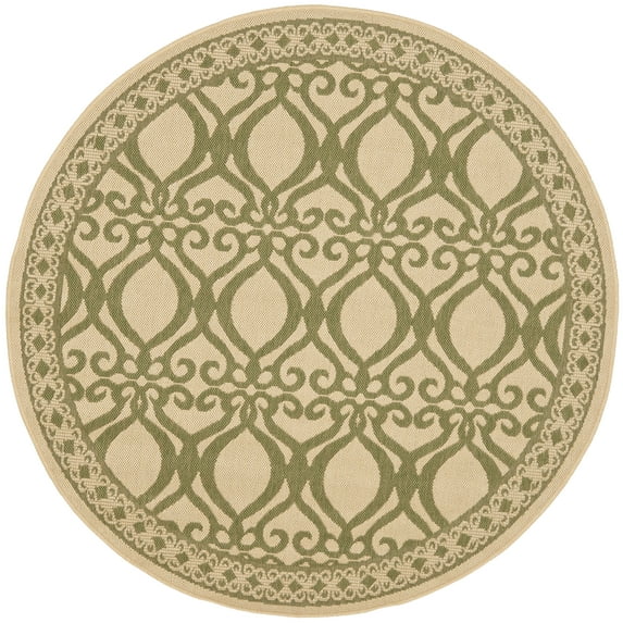 SAFAVIEH Courtyard Colton Geometric Indoor/Outdoor Area Rug, Natural/Olive, 5'3" x 5'3" Round