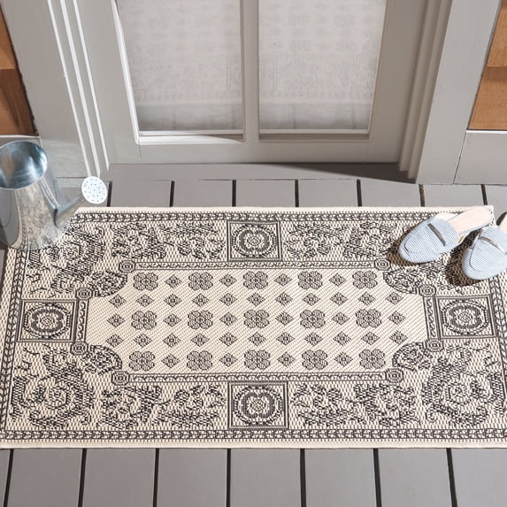 Hero image 0 of Safavieh Courtyard Erin Bordered Indoor/Outdoor Area Rug, Sand/Black, 2'7" x 5', 0 of 8
