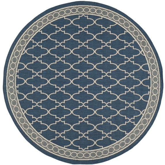Hero image 0 of SAFAVIEH Courtyard Jasper Geometric Bordered Indoor/Outdoor Area Rug, 6'7" x 6'7" Round, Navy/Beige, 0 of 4