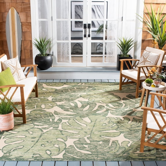 Safavieh Courtyard Ivy Botanical Indoor/Outdoor Area Rug, Beige/Green, 9' x 12'