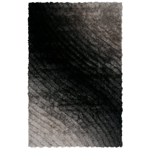 Shag Rug Collection. Plush And Dense Pile Perfect For Living And Bedroom Décor. Gently flowing waves of texture and tone-rich color float across the plush pile of this sublime 3D shag by Safavieh. Colored in an artful display of light and darker shades of posh silver set in soft curves of plush yarn, this 3D shag is as comforting to the touch as it is intriguing to room décor. Made using durable, easy-care synthetic yarns for long-lasting penthouse style and elegance.
