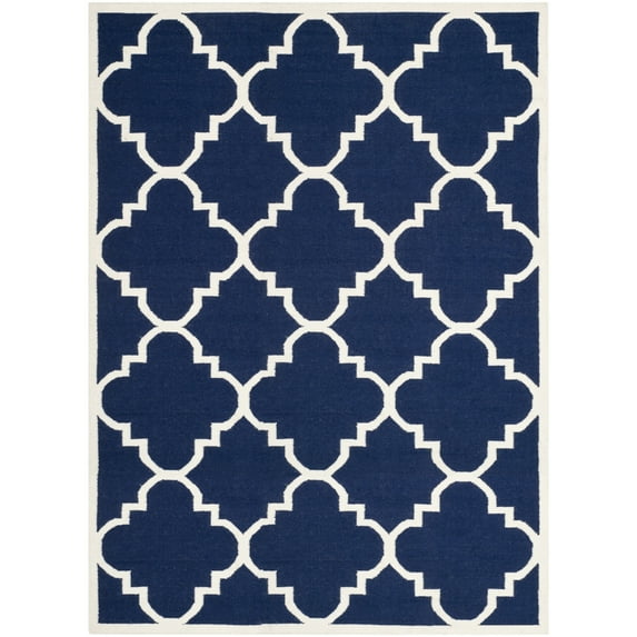 Hero image 0 of SAFAVIEH Dhurrie Tobias Geometric Moroccan Wool Area Rug, Navy/Ivory, 8' x 8' Square, 0 of 10