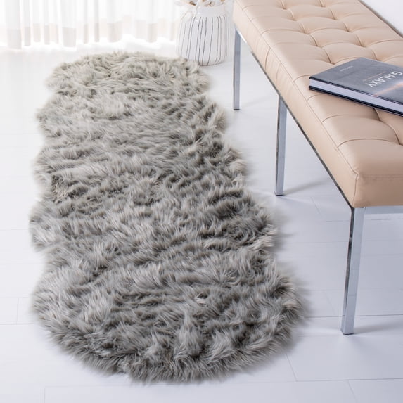 Safavieh Faux Sheep Skin Jadyn Animal Runner Rug, Gray, 2'6" x 8'