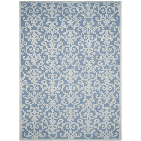 SAFAVIEH Glamour GLM101B Handmade Blue / Ivory Rug The Glamour Collection is a beautiful exhibit of traditionally designed area rugs made for today's stylish home decor. Hand-tufted using 100% pure wool, each elegant area rug features classic rug designs set against a soft, medium cut pile. Glamour is an ideal choice for the living room, family room or master suite. Rug has an approximate thickness of 0.5 inches.
