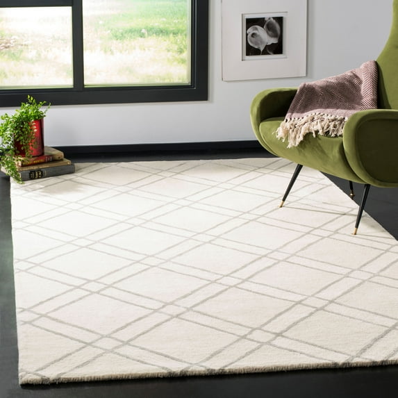 SAFAVIEH Himalaya Maralyn Geometric Wool Area Rug, Ivory/Silver, 9' x 12'