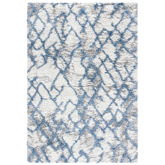 SAFAVIEH Horizon Milica Abstract Shag Area Rug, Ivory/Blue, 3' x 5'
