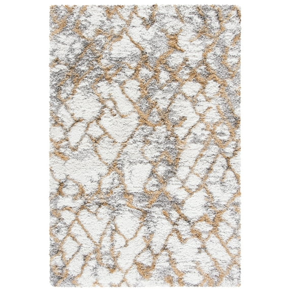 SAFAVIEH Horizon Milica Abstract Shag Area Rug, Ivory/Gold, 8' x 10'