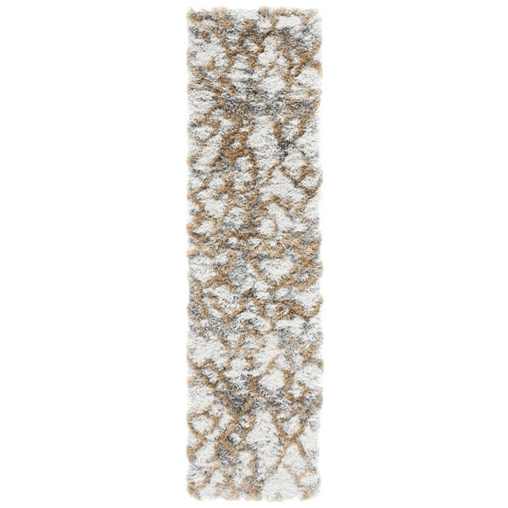 SAFAVIEH Horizon Milica Abstract Shag Runner Rug, Ivory/Gold, 2' x 7'