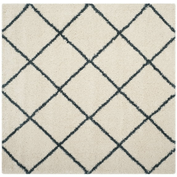 SAFAVIEH Hudson Amias Geometric Shag Area Rug, Ivory/Slate Blue, 7' x 7' Square