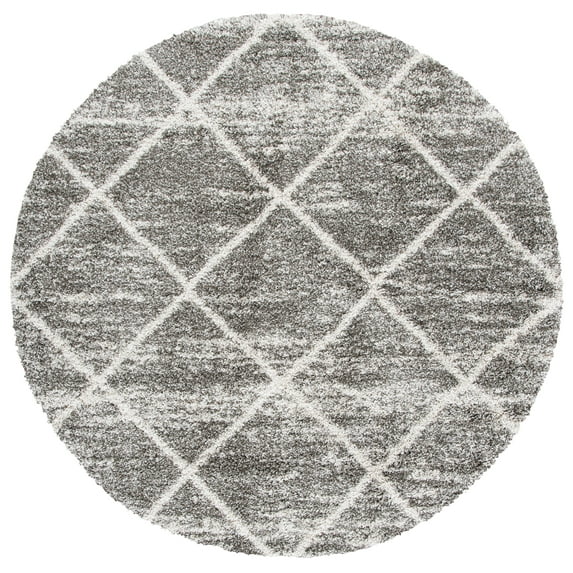 Hero image 0 of SAFAVIEH Hudson Amias Plush Geometric Shag Area Rug, Distressed Grey/Ivory, 5' x 5' Round, 0 of 8