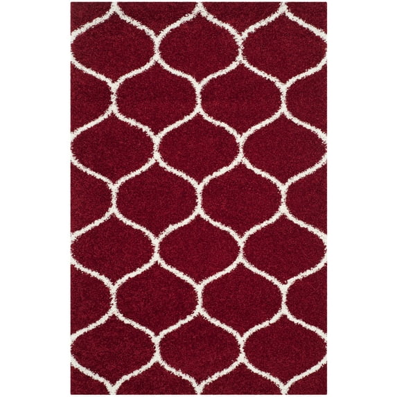 Hero image 0 of SAFAVIEH Hudson Arline Plush Geometric Shag Area Rug, Red/Ivory, 2'3" x 3'9", 0 of 9