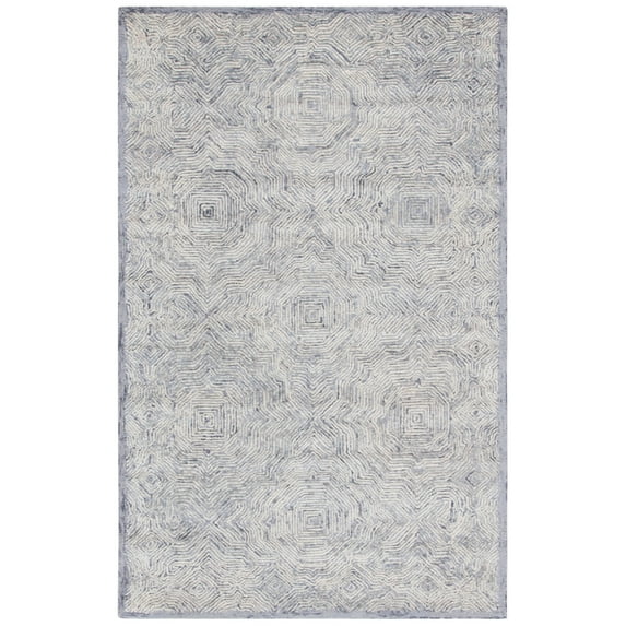 SAFAVIEH Ikat Collection IKT506G Handmade Silver Rug The Ikat Rug Collection showcases globally-inspired motifs and ancient coloring techniques used by Silk Road weavers for centuries. In this collection, Ikat rug artistry is brilliantly revived for modern home d�cor with designs from playful to sophisticated. The luscious colors displayed in Ikat come alive in a hand-tufted, pure wool cut pile for a soft feel underfoot and a trendy touch of boho attitude. Rug has an approximate thickness of 0.5 inches.