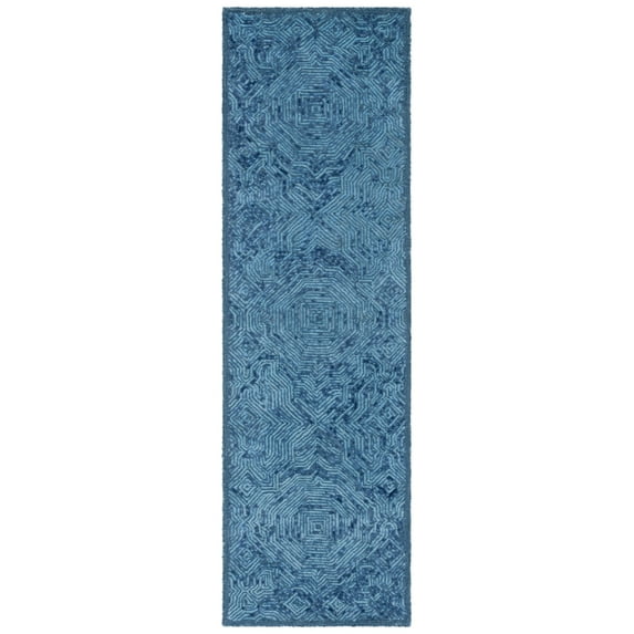 SAFAVIEH Ikat Collection IKT506N Handmade Dark Blue Rug The Ikat Rug Collection showcases globally-inspired motifs and ancient coloring techniques used by Silk Road weavers for centuries. In this collection, Ikat rug artistry is brilliantly revived for modern home d�cor with designs from playful to sophisticated. The luscious colors displayed in Ikat come alive in a hand-tufted, pure wool cut pile for a soft feel underfoot and a trendy touch of boho attitude. Rug has an approximate thickness of 0.5 inches.