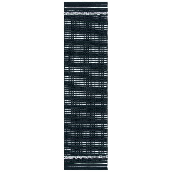 SAFAVIEH Kilim Ksenija Striped Cotton Runner Rug, Black/Ivory, 2'3" x 7'