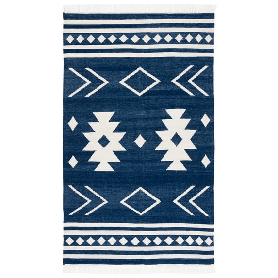 SAFAVIEH Kilim Trochez Geometric Area Rug, Navy/Ivory, 6' x 9'