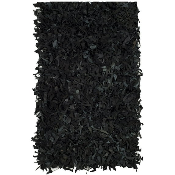 Hero image 0 of SAFAVIEH Leather Leather Solid Shag Area Rug, Black, 5' x 8', 0 of 9