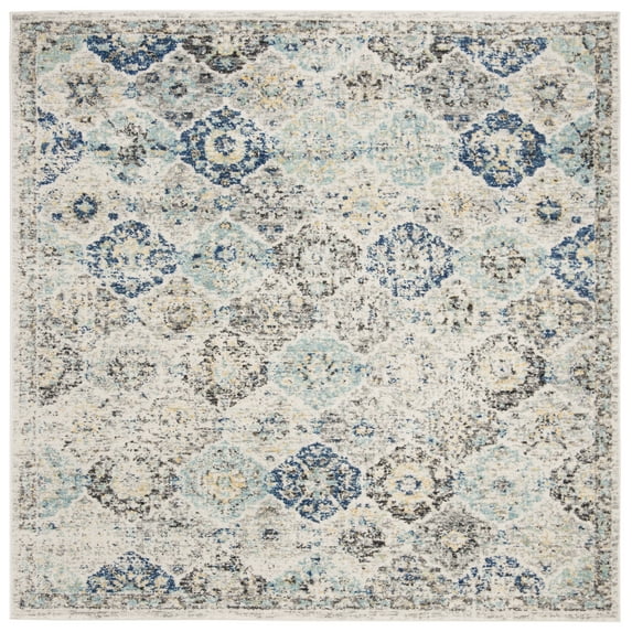SAFAVIEH Madison Judith Distressed Area Rug, Ivory/Aqua, 9' x 9' Square