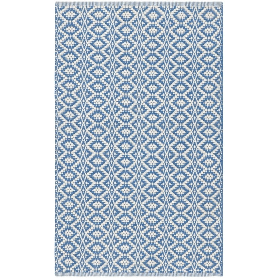 Hero image 0 of SAFAVIEH Montauk Corrine Geometric Cotton Area Rug, Ivory/Blue, 2'3" x 3'9", 0 of 4