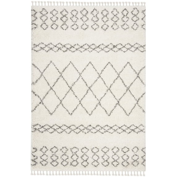 Hero image 0 of SAFAVIEH Moroccan Fringe Scarlett Geometric Shag Area Rug, Ivory/Grey, 4' x 6', 0 of 5