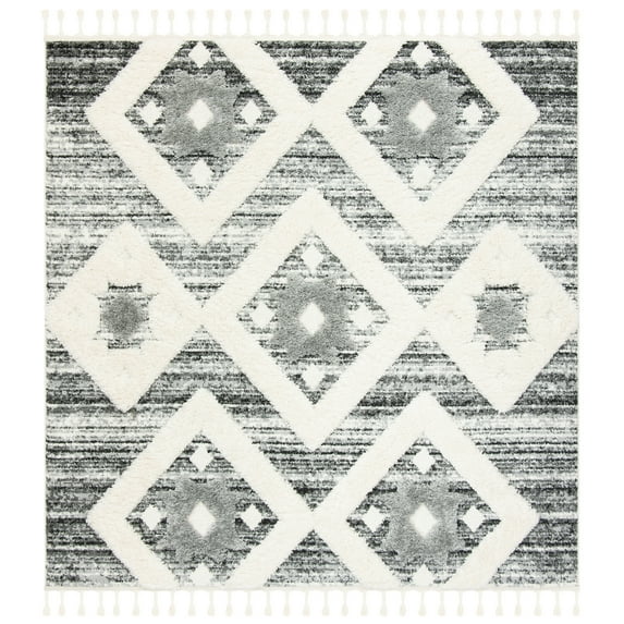Hero image 0 of SAFAVIEH Moroccan Tassel Dawson Geometric Shag Area Rug, Grey/Ivory, 9' x 9' Square, 0 of 7