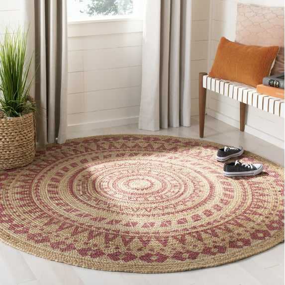 Hero image 0 of SAFAVIEH Natural Fiber Zoolander Geometric Jute Area Rug, Pink/Natural, 8' x 8' Round, 0 of 6