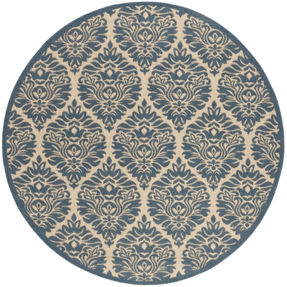 SAFAVIEH Linden Bryony Geometric Indoor/Outdoor Area Rug, Cream/Blue, 6'7" x 6'7" Round