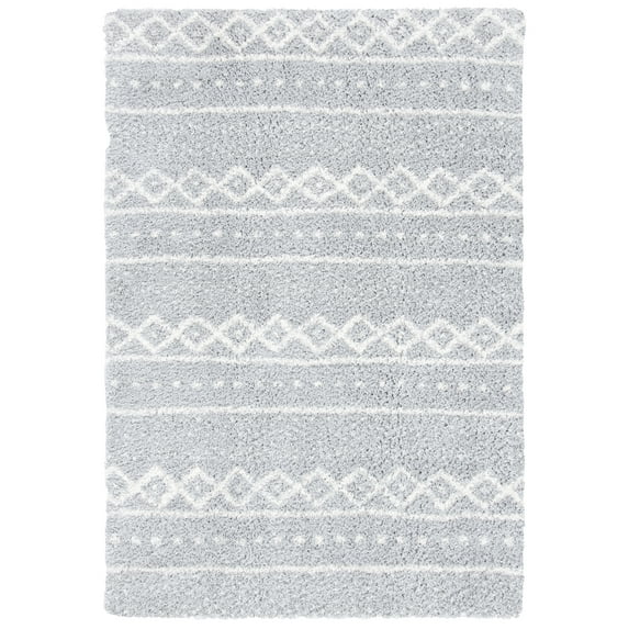 SAFAVIEH Parma Benedict Geometric Shag Area Rug, Grey/Ivory, 4' x 6'