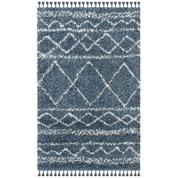 SAFAVIEH Pro Lux Marie Geometric Shag Area Rug, Blue/Ivory, 4' x 6'