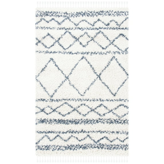 SAFAVIEH Pro Lux Marie Geometric Shag Area Rug, Ivory/Blue, 8' x 10'