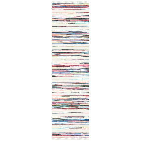 Hero image 0 of SAFAVIEH Rag Benton Striped Cotton Runner Rug, Ivory/Multi, 2'3" x 10', 0 of 10